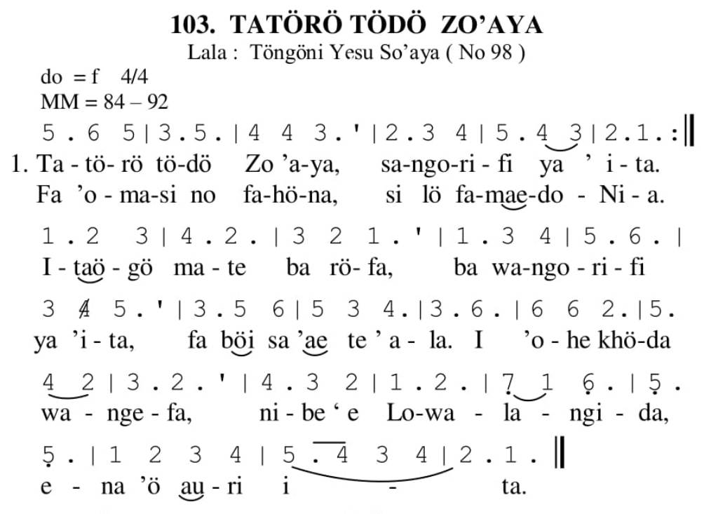 Si manõ daroma Li Lowalangi, da tatema’õ faoma sinunõ moroi ba Mbuku Zinunõ No. 103 : 1